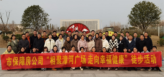 為推介漳河廣場(chǎng)項目,增強團隊精神,激勵員工闊步邁向新一年,元旦前夕,市城控集團直屬子公司市保障房公司開(kāi)展了“相聚漳河廣場(chǎng) 走向幸福健康”徒步活動(dòng)。