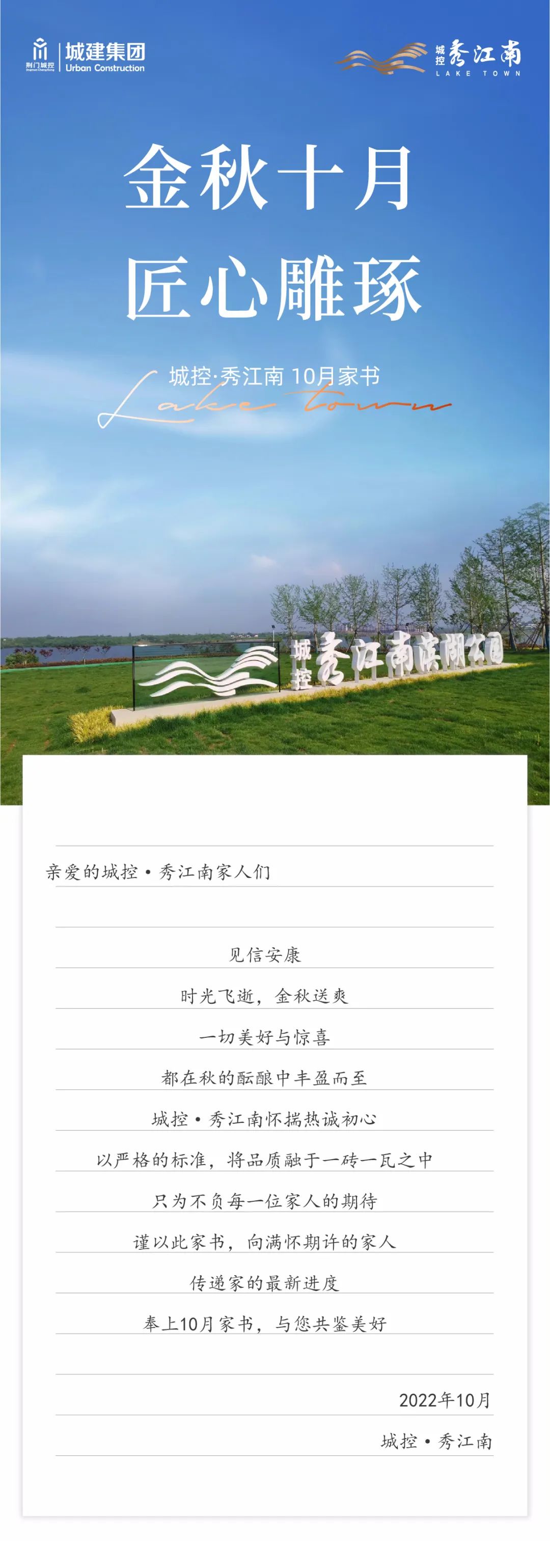 金秋收獲時(shí),美好佳音至,時(shí)光匆匆而過(guò),家也在時(shí)間中不斷呈現。城控?秀江南在筑造美好生活的道路上步履不止。一磚一瓦用匠心打磨,一草一木用真心澆灌,在時(shí)間的見(jiàn)證之下,幸福加速而來(lái)。