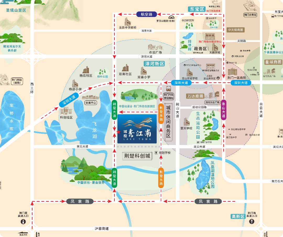荊楚大道(深圳大道-鳳袁路)已完工,已通車(chē)。 荊楚東路(深圳大道-鳳袁路)已完工,已通車(chē)。 關(guān)公大道(荊山大道-荊楚大道)關(guān)公大道 正在進(jìn)行路基填筑