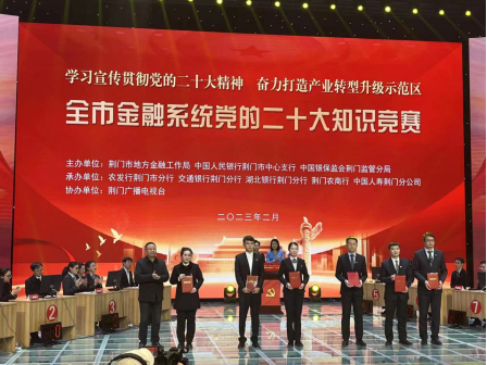 2月6日,由荊門(mén)市地方金融工作局、中國人民銀行荊門(mén)市中心支行、中國銀保監會(huì )荊門(mén)監管分局主辦的全市金融系統黨的二十大知識競賽決賽在荊門(mén)廣播電視臺舉行。荊門(mén)市天城小額貸款有限公司李默、張晨、劉怡然三名同志經(jīng)過(guò)緊張激烈的復賽比拼,從27支參賽隊伍中脫穎而出闖進(jìn)決賽,最終榮獲三等獎。