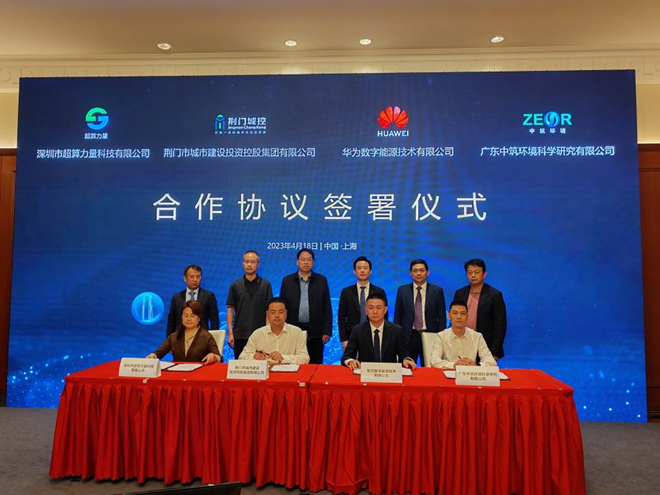 在各方主要負責人見(jiàn)證下,荊門(mén)城控集團與華為數字能源技術(shù)有限公司、深圳市超算力量科技有限公司、廣東中筑環(huán)境科學(xué)研究有限公司簽訂了《華為超級充電樁》四方框架合作協(xié)議。