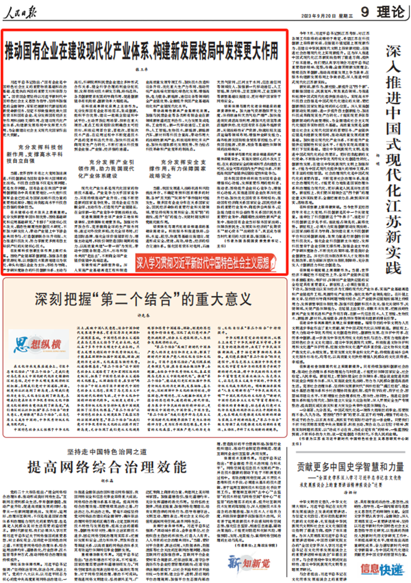9月20日,《人民日報》理論版刊發(fā)國務(wù)院國資委黨委書(shū)記、主任張玉卓署名文章《推動(dòng)國有企業(yè)在建設現代化產(chǎn)業(yè)體系、構建新發(fā)展格局中發(fā)揮更大作用》,全文分享如下――